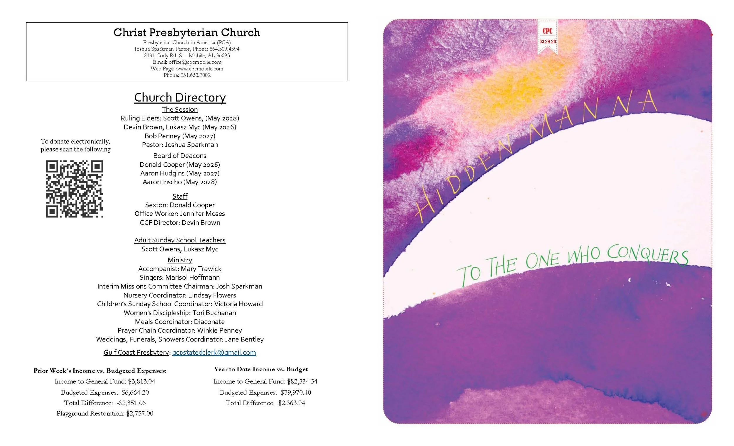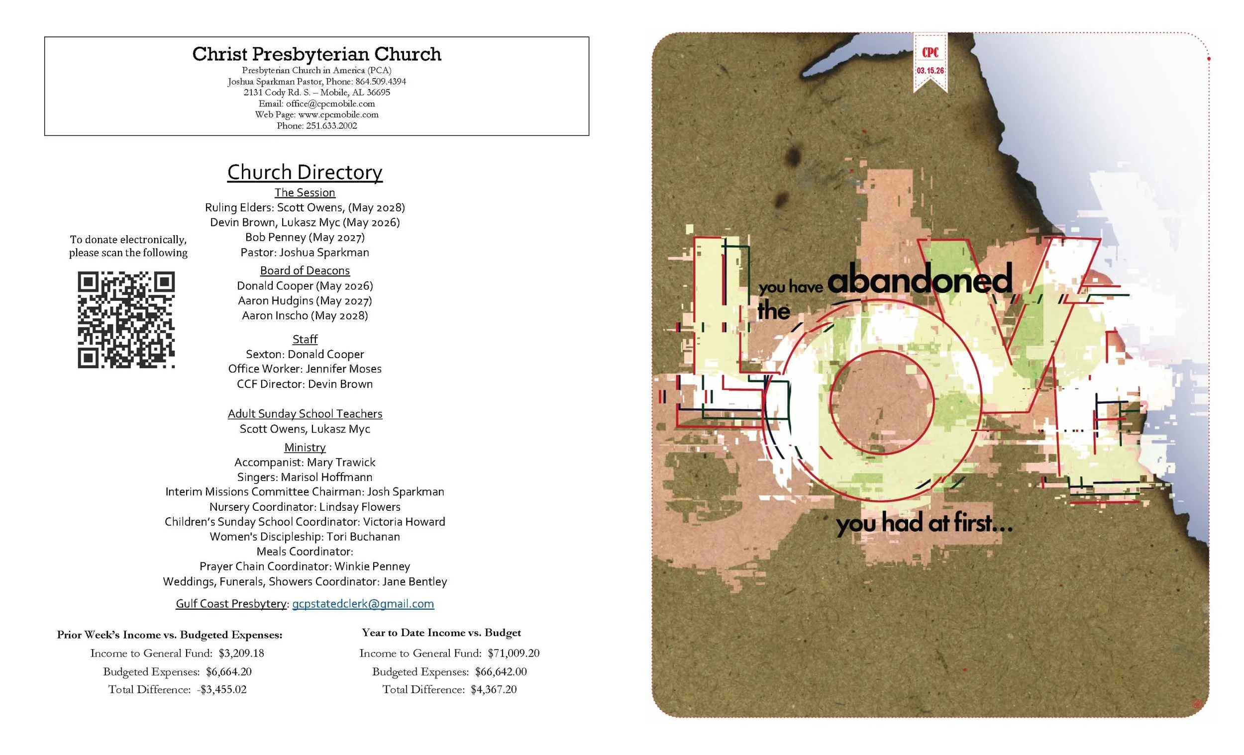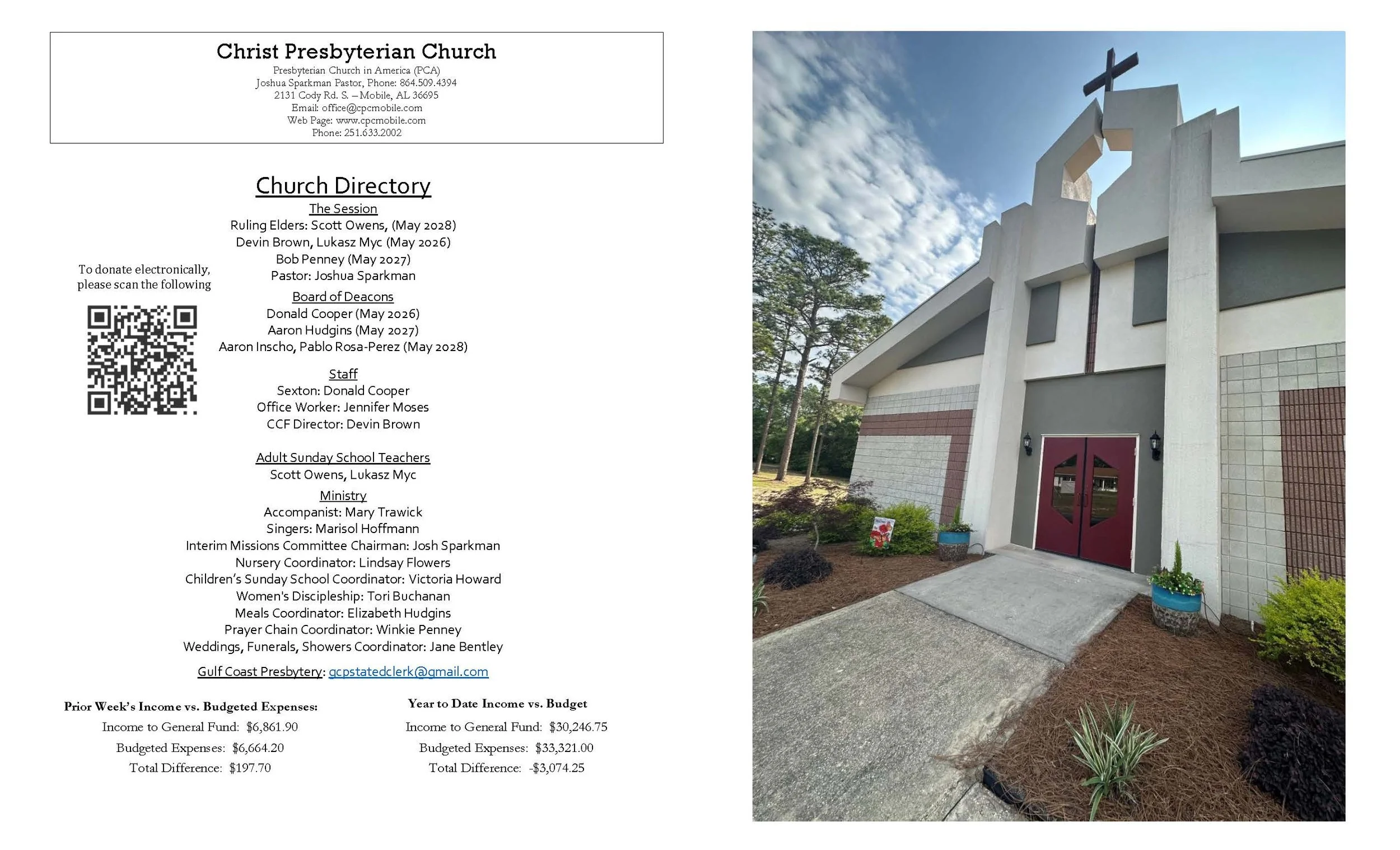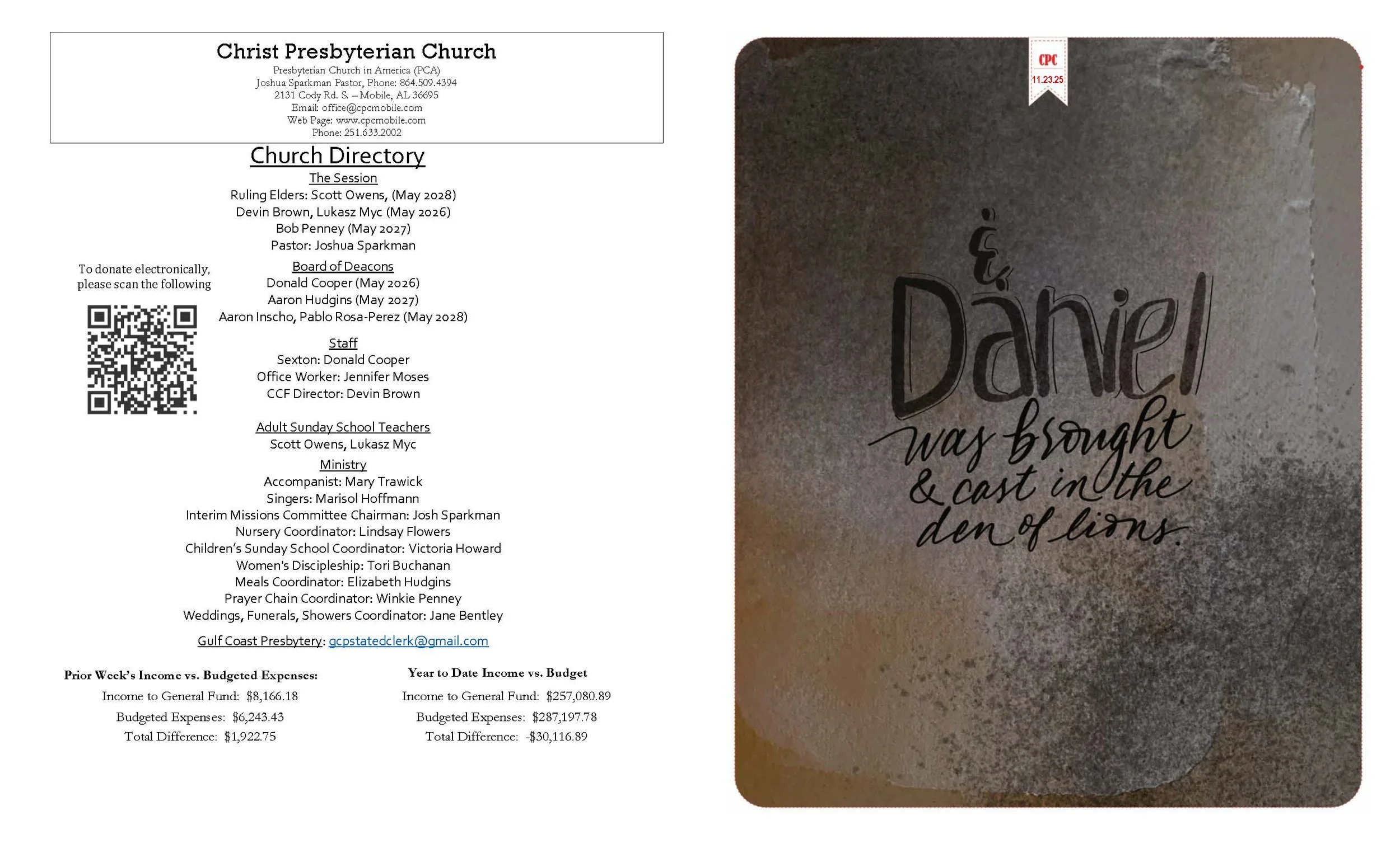 Christ Presbyterian Church is a ministry according to the Reformed Faith in West Mobile. We are a congregation of the Presbyterian Church in America, the largest conservative Reformed and Presbyterian denomination in the country. We believe that we exist for the glory of God and that glorifying God involves serving and loving peoples from all walks of life as we share the message of salvation through Jesus Christ. Missions and outreach are a vital part of the life of Christ Presbyterian Church.